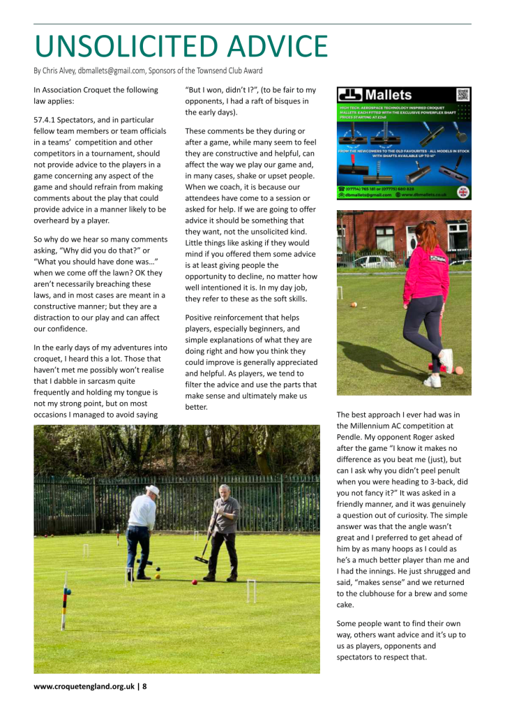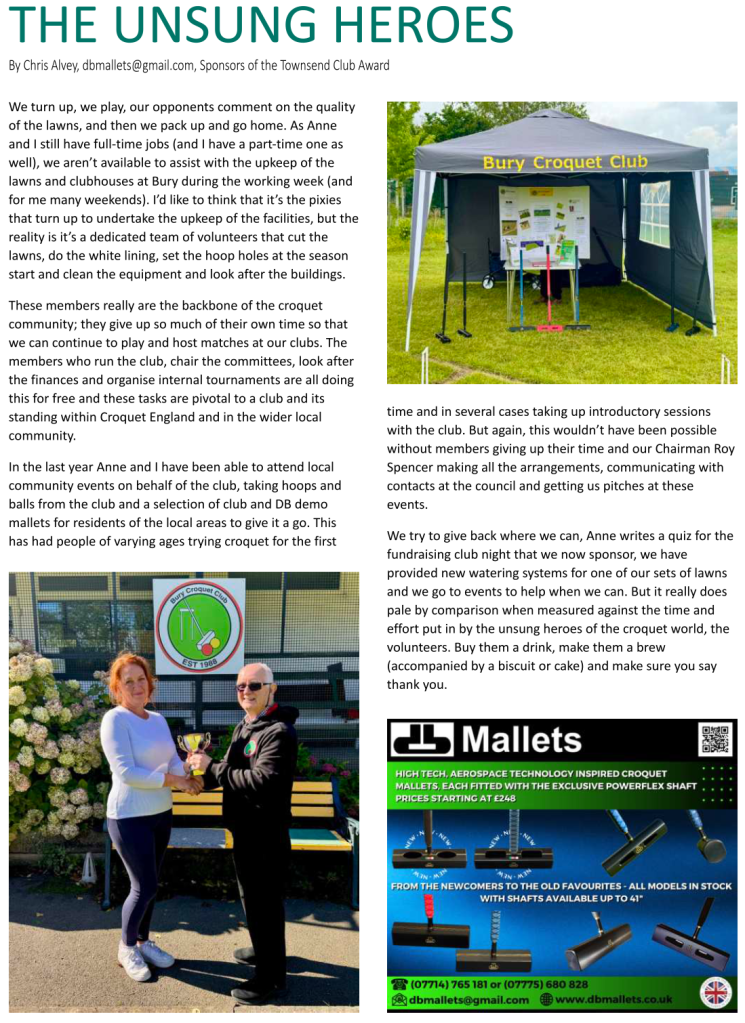 As sponsors of the Townsend Club Award for Croquet England, we have been fortunate enough to write articles for the gazette. Our ramblings can be found here (Click an article to read full screen)